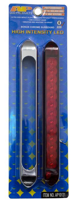 AP10131. Small Slimline bars. Red stop/tail. This is a neat compact trailer lamp that allows fitting in tight spaces. Removable chrome surround.