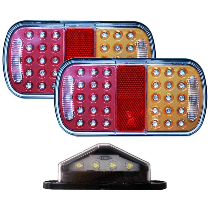 LED trailer upgrade pack providing everything you need to retrofit an existing trailer or new trailer with the latest LED lighting. Including 2 rear combination lights a number plate light, a 7 pin flat trailer plug. All the wiring features weatherproof plugs to make the install as simple as possible.