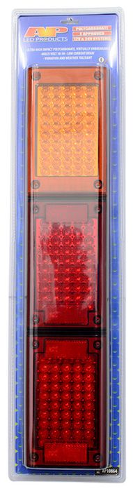 AP10864. Red/Red/Amber - Stop/Tail/Indicator/Reflector . “Jumbo” style lamp suitable for light commercial, RV, or Truck & Trailer applications. Available in single, double or triple combinations. Multi-volt circuitry. In-built reflectors and 50 LEDs per module.