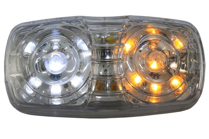 AP11014. White/Amber - LED Upgrade of the popular “Cats Eye” marker lamps. The ideal lamps to replace larger style incandescent marker lamps. Features include multi-voltage circuitry and polycarbonate lens construction.