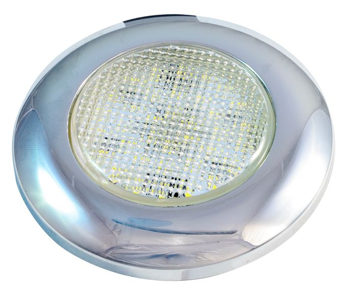 AP12071. LED Courtesy Light, 75mm diameter. Chrome Surround. Low profile surface mount interior lamp featuring low current draw.