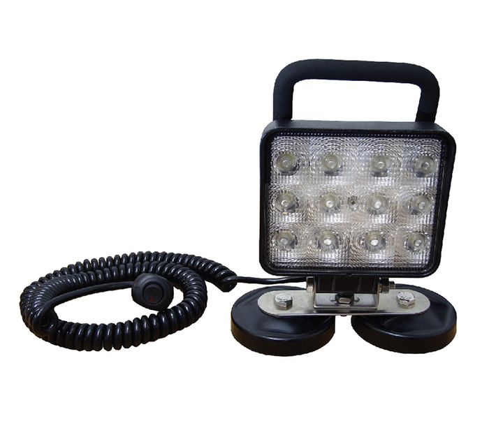 AP14171. Rectangular LED multi-volt, high output worklamp featuring a removeable handle and magnetic base with a spiral lead and switch. Standard version (AP14170) is also available.