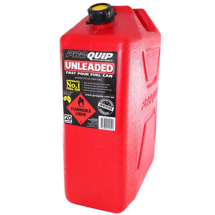 P0950. Fuel Can Plastic 20L Unleaded-Red.