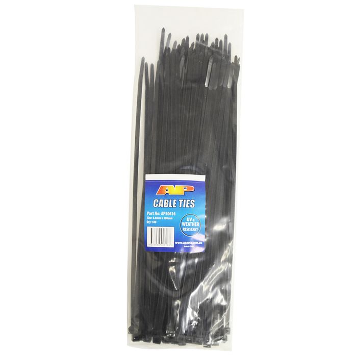 AP50616. Cable ties - 100/pack. 4.8mm wide x 300mm long - Black. (CT300).