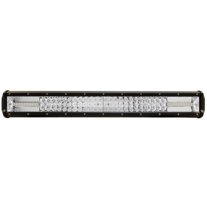 AP16312 . 582mm long LED light bar. The central triple row LEDs provide an extra 30% output over conventional double row LED bars. The side flood beam emits a super bright and widespread beam illumination. Adjustable/sliding bracket.