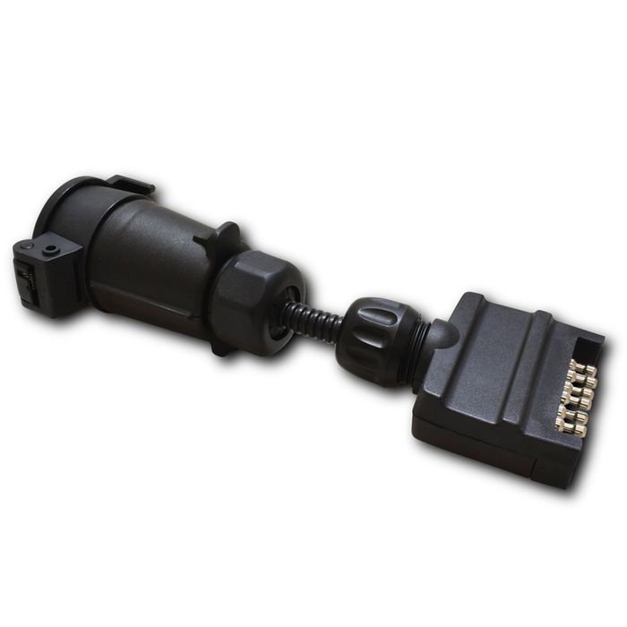 AP83100. Trailer - 7 Pin Flat Socket on Car to 7 Pin Large Round Plug on Trailer. Plastic. Blister Pack.