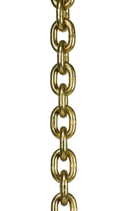 Grade 70 transport chain is electroplated gold to resist oxidization and is sold by the metre.