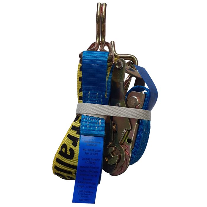 These Ratchet Tie Down assemblies are a complete lashing system with the benefits of high pretension therefore less damage to cargo for general transport requirements. Manufactured from high tenacity polyester Webbing, Heavy Duty Hook and Keepers stamped with lashing capacity, heavy duty Ratchet Buckle. ID tagged on both tail and free end of strap with, lashing capacity, strap length, safety information, date of manufacture & batch numbered. 25mm X 5mtr Lashing capacity is 750kg. These are made to Comply with AS/NZS 4380.