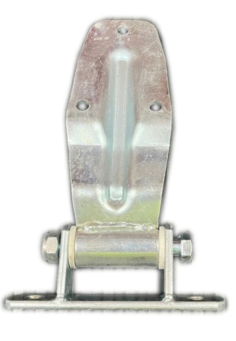 REAR DOOR HINGE. MEDIUM SIZE, PRESSED STEEL, ZINC PLATED. REMOVABLE PIN. BOLT ON BLADE AND BRACKET. OVER SEAL APPLICATION.