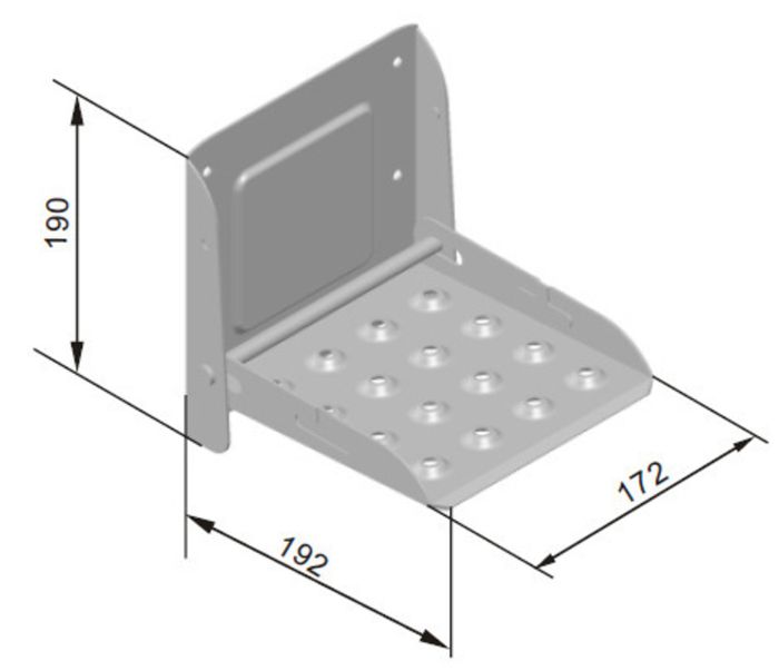 Ladder - Fold Down Single Step. Screw on. L192 x W172mm. Pressed Steel - Zinc Plated.