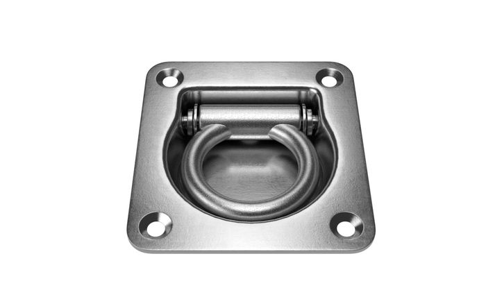 SWL 700Kg. This anchor point folds away when not in use and is designed to mount flush in the trailer floor. The large flip-up ring is versatile enough to accept most tie down fittings.