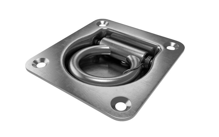 SWL 700Kg. This anchor point folds away when not in use and is designed to mount flush in the trailer floor. The large flip-up ring is versatile enough to accept most tie down fittings.