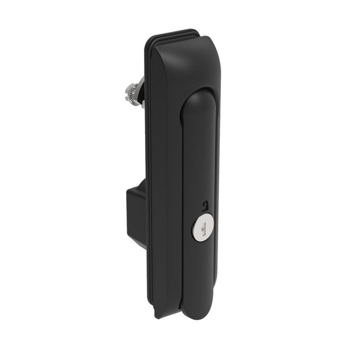 H3-50-302-150. Southco. Swing handle Latch, Medium Size - 125 mm (4.92 in), Without Padlock Hasp, Use with Linear Actuator, CH 300 Key, Sealed, Zinc Alloy, Powder Coated, Black.