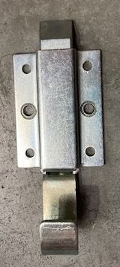 MCN95004. Slam Lock - Finger Pull for Release. Spring Action. Screw On / Rivet On. Material : Steel, Zinc Plated. Overall Length : 125mm. Body size 66.8mm long, 50mm wide, 39mm overall height.