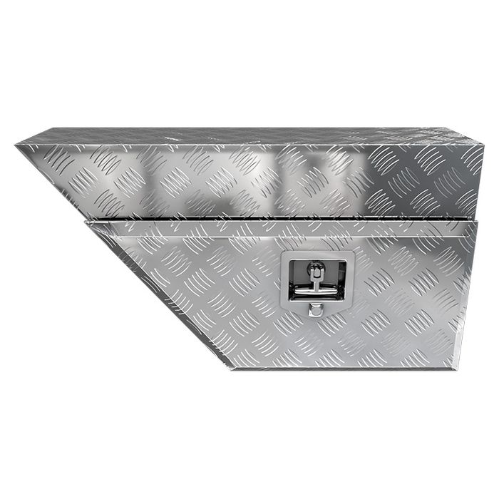 TBTRALU754025L. Tie Rail accommodating Toolbox in Aluminium Checker Plate -Left Hand. Wide x 750, Deep x 200 (250 including door), High X 400mm. (Left - Passenger side rear, behind wheel.).
