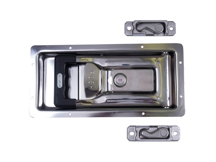 Material: Stainless steel De Molli Industrie – The Best Expression in Italy’s Combination of Technique, Design and Quality. Recessed Door Locking Dish Kit in 2mm thick Stainless Steel. 29mm deep to suit 16MM diameter tube ( not supplied ) Forged S/S Cams for welding to tube. Forged S/S Keepers ( handed ) – 11mm height effectively with water drain.